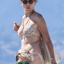 Sharon Stone Celebrity Beautiful Babe Posing Hot Bikini Sexy Fashion American Tit Slip