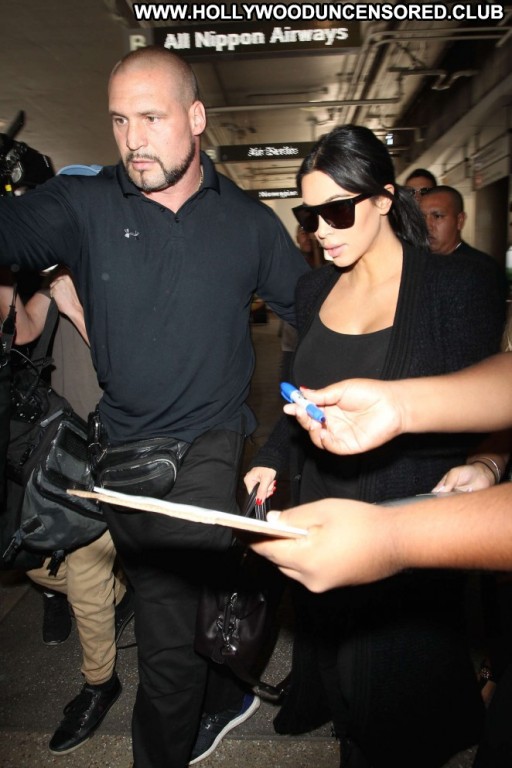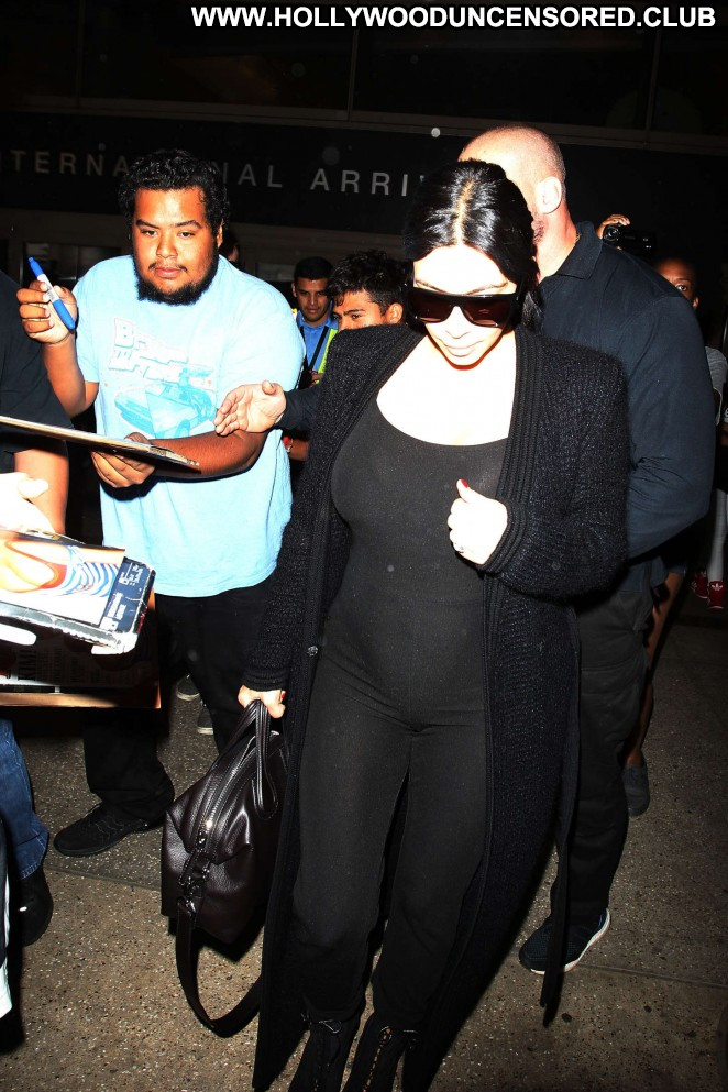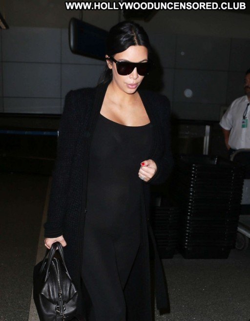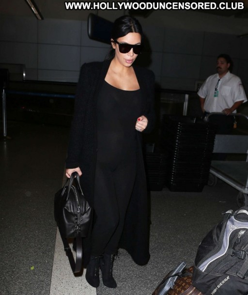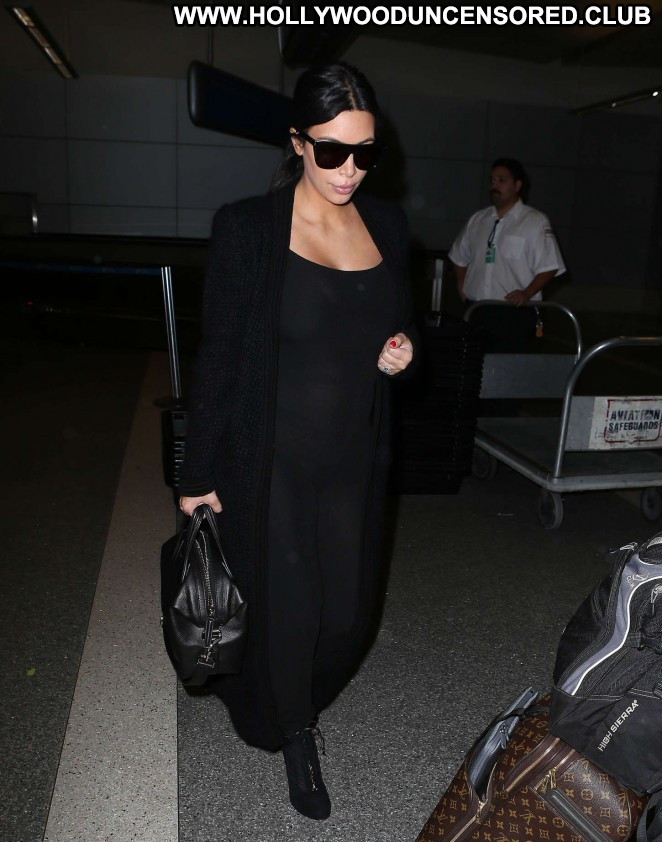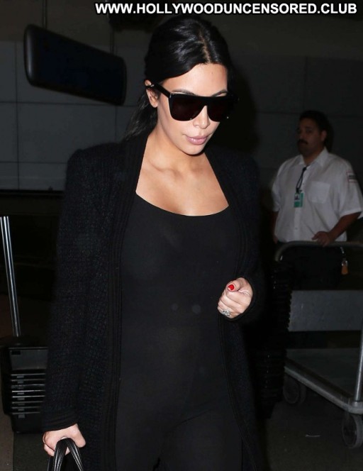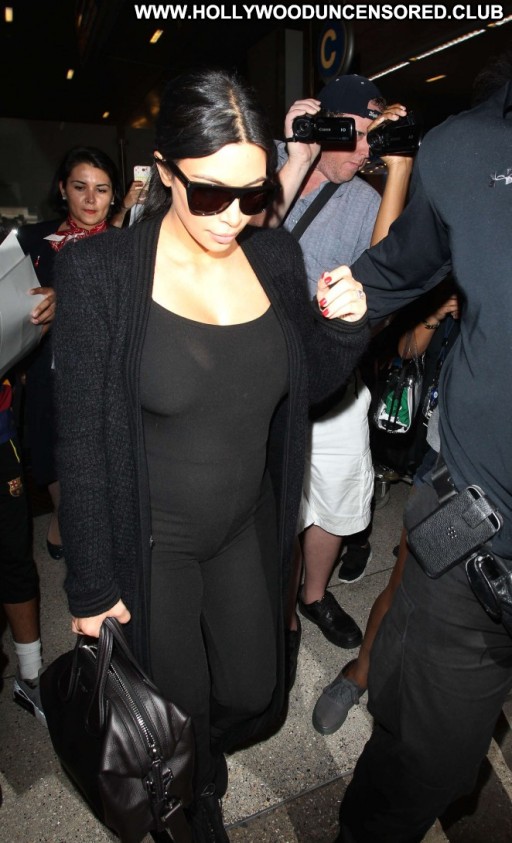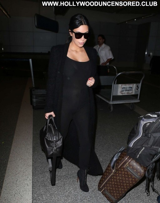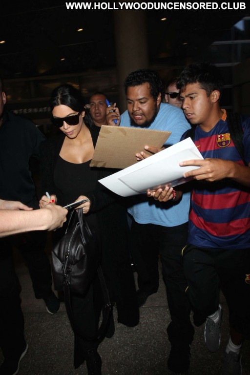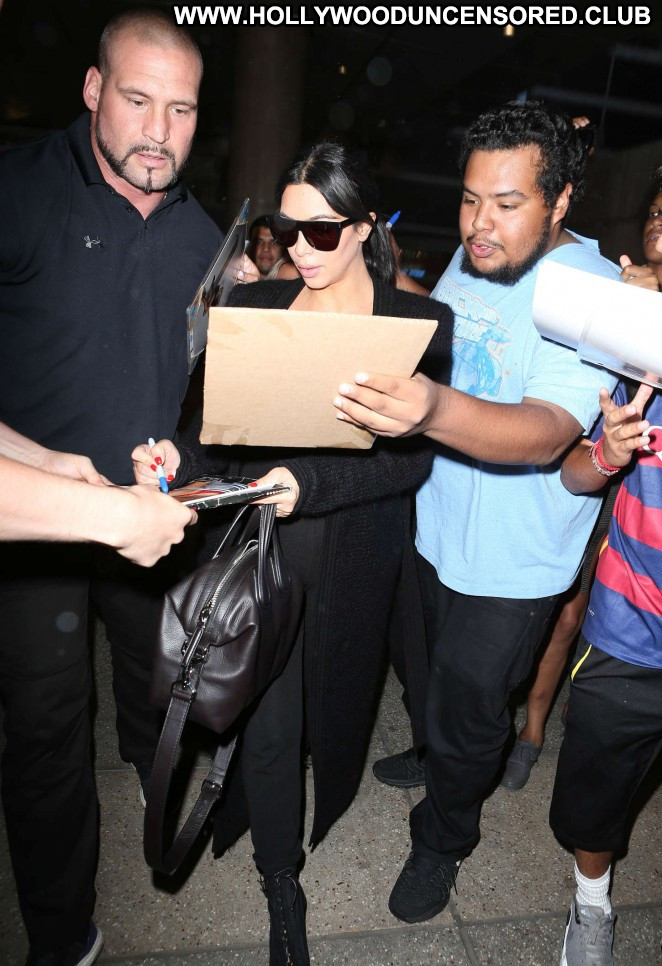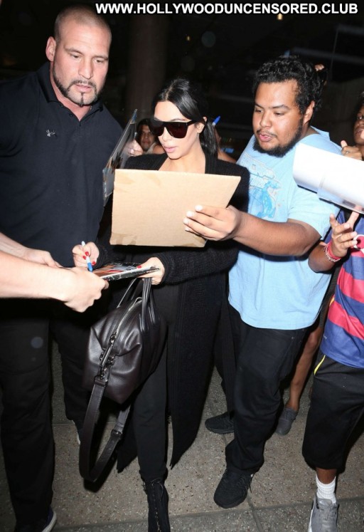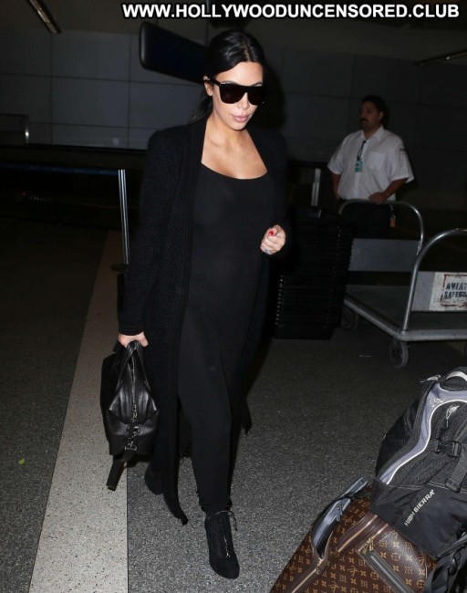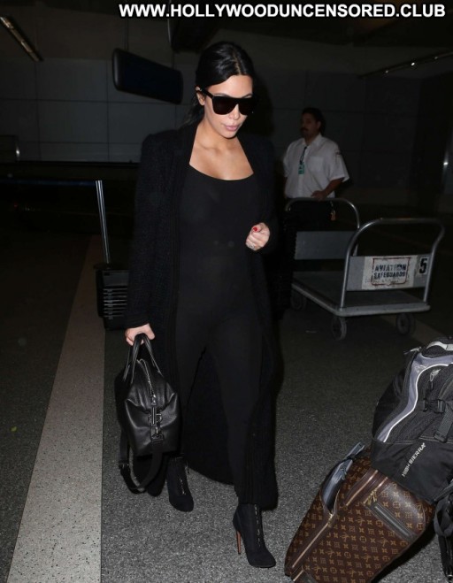 Kim Kardashian Lax Airport Celebrity Beautiful Babe Posing Hot Paparazzi Black Lax Airport